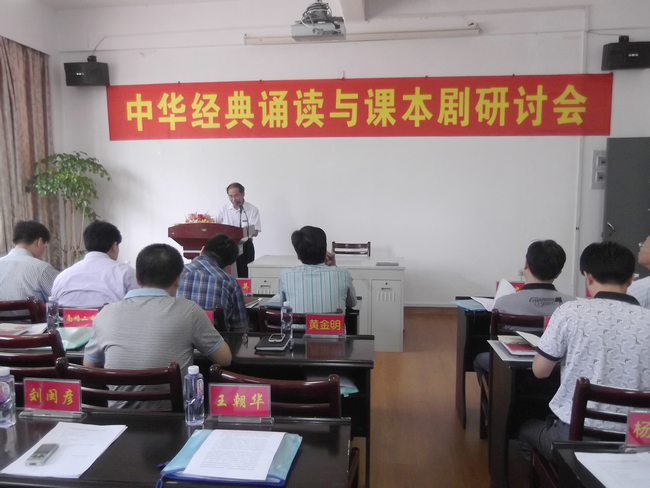 文学院院长黄金明、校关工委副主任邱煜焜分别在会上作了主题发言。文学院课本剧实践基地负责人杨娟娟老师汇报了经典诵读与课本剧近三年的发展规划,漳州一中代表王龙祥老师作了以《寻求语文的“舞台空间”》为题的发言。