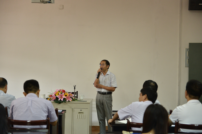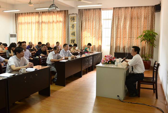 9月5日下午,李进金校长前往文学院参加新学期首次全体教师会议,会议由黄金明院长主持,会场气氛和谐庄重,教师们不时动笔,共思共筹校院(系)二级管理的发展思路。