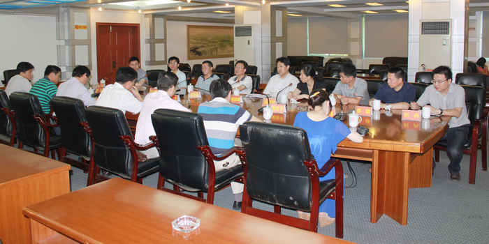 在逸夫楼三楼会议室,校长李进金主持召开交流座谈会。李校长简要介绍了登录入口基本办学情况,在办学特色、学科布置、科研情况方面做了详细的说明,并对更名工作提出了合理的建议和意见。