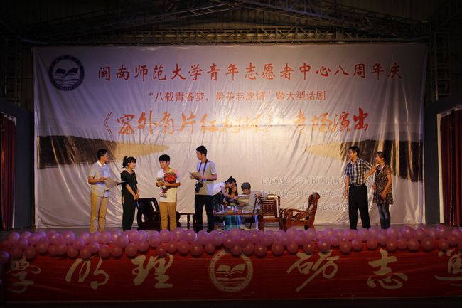 5月23日晚,校青年志愿者中心八周年庆典暨《窗外有片红树林》大型话剧演出在球类馆举行。校团委副书记郑炎山,校关工委副主任、芗涛剧社指导老师邱煜焜以及校志愿者指导老师出席本次晚会。