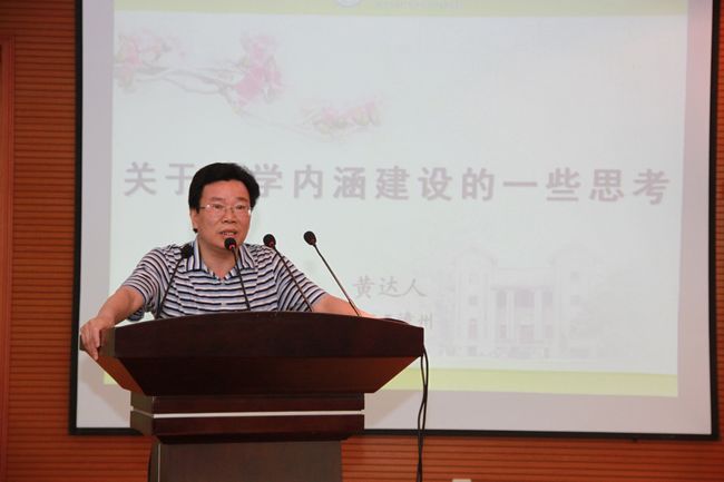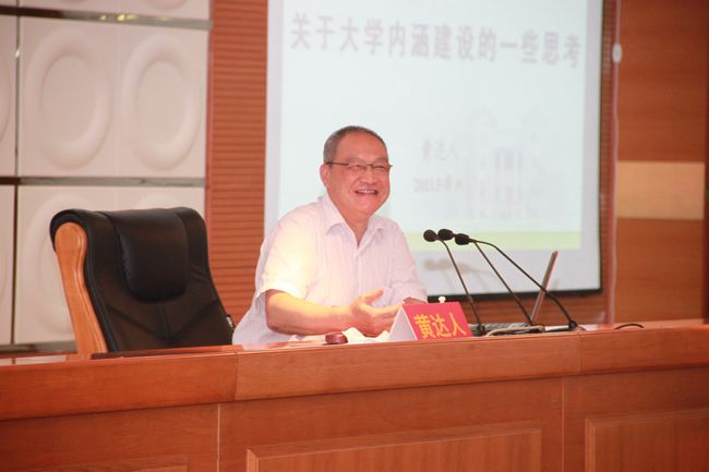 5月23日下午,原中山大学校长黄达人教授应邀来登录入口作关于大学内涵建设的专题报告。报告会在逸夫图书馆五楼报告厅举行,学校党政领导、全校副处级以上干部、教授、政工干部、行政人员、相关院系教师代表到场听取报告。报告会由校长李进金主持。