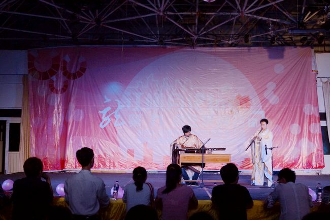 伴随着经济系民舞队婀娜多姿的扇子舞,本次晚会拉开序幕。郑陈芬同学以一首日语歌曲《欢迎回来》,表达对已毕业却心系学校、心系龙江曦月论坛的同学们的真挚祝福与感谢。接着,由芝山剧社带来的小品《春暖花开》将晚会推向高潮。南音协会一曲古姿古韵的《绵搭絮》之后,校艺术团热情奔放的国标舞《拉丁情》更是将异国风情展现得淋漓尽致。