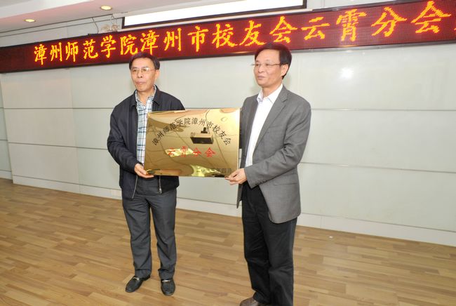 当选的漳州市校友会云霄分会会长、78级校友林称发表了热情洋溢的讲话,他指出云霄校友分会的成立,是云霄校友生活中的一件喜事,为云霄校友们提供一个畅叙友情、交流信息、互帮共进的平台和纽带。他表示将不负众望,与云霄校友们携手并进,为云霄校友和母校的发展贡献力量。漳州市校友会常务副会长郑智民为云霄校友分会授牌.