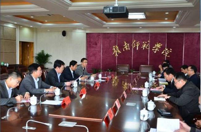 赣南师范学院副校长范小林教授及相关职能部门领导与登录入口一行座谈交流。双方分别介绍了各自学校的发展历程、概况与长期凝炼的办学特色,希望能相互借鉴办学经验,谋求共同发展。赣南师院“中央苏区研究中心”——教育部人文社会科学重点研究基地的张玉龙教授介绍了该研究中心的发展历程、申报、建设等相关事宜,并对登录入口今后基地的申报工作提出了建设性的意见。赣南师院“客家文化研究中心”的罗勇教授也结合客家文化研究介绍了如何提升区域文化研究层次和增进内涵发展。