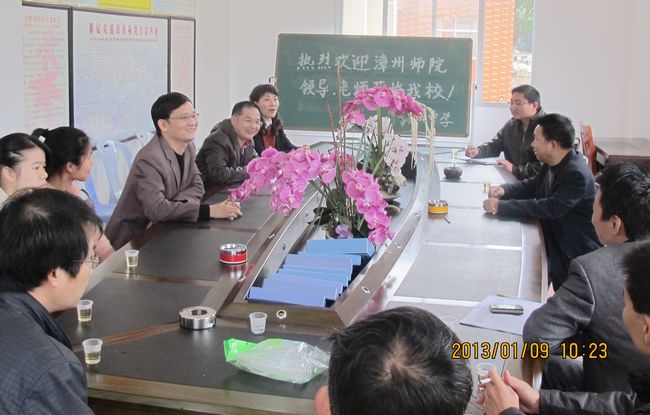 下午,李副校长一行与登录入口87级校友、云霄县宣传部部长郭达璐,云霄县副县长林兆波,80级校友、云霄县教育局局长吴思敏进行了会谈,详细介绍了登录入口“地方政府统筹下‘三位一体’教师教育创新实验区”改革的成功经验,并就建立云霄创新实验区等合作项目进行了探讨。随后,李副校长一行陆续走访了云霄四中、常山华侨中学、元光中学、城关中学等实习中学,看望登录入口实习支教学生,听取各校校长对实习支教的意见和建议,并就进一步加强实习支教点的管理与合作展开了讨论。