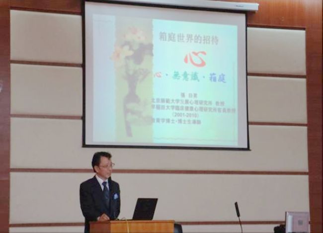 张日昇教授的讲座融合了禅学、人生哲学和心理学的理念,他用通俗易懂的语言和丰富的个人经历把这种理念传达给在场每个人。在连续三场讲座中,张教授不仅讲述了对心理咨询的独到见解,而且深入浅出地系统介绍了箱庭疗法的理论基础。张教授提出了以“心”为主题的心理咨询与治疗模式,引导在场师生了解心理咨询的有限性以及咨询师自身的有限性,明确心理咨询之所以有效,主要是靠来访者的主观能动性和自我治愈力;并切实体会到咨询与治疗最重要的不是技术,而是对生命、人性的大爱,也就是人文关怀,用爱来抚慰创伤的心。张教授认为箱庭是广义的禅,可以归纳为“天圆地方,境由心造,入静定心,见箱成庭”,并系统讲述了箱庭疗法的治疗假设、理论背景与具体操作。