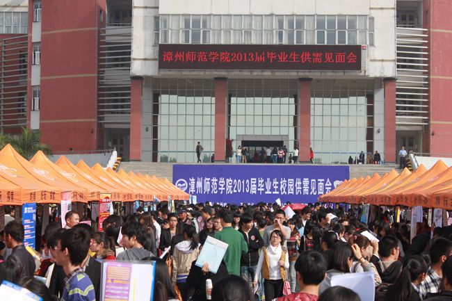 12月15日,漳州师范学院2013届毕业生校园供需见面会在登录入口弦歌广场举行。供需会由登录入口与厦门市人才服务中心联合举办。漳州市公务员局吴苏武、厦门市人才服务中心主任程常建、校招生就业处、部分院系等单位负责人到场指导。漳州地区5000多名毕业生参与应聘。