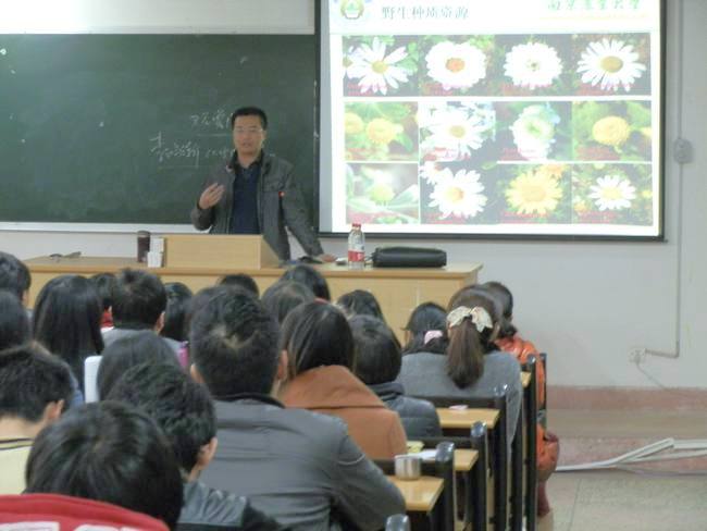 12月11日下午,,南京农业大学园艺学院副院长陈发棣教授应生物系邀请,在博西205举办一场以“菊花新品种选育与推广应用”为主题的讲座。讲座由生物系副主任陆銮眉教授主持,生物系园艺专业师生到场聆听了本次讲座。