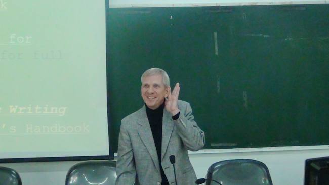 12月9日上午,厦门大学外文学院加拿大籍Bill Mann博士应外语系邀请,在逸夫楼梯教二开设了一场题为《Getting Published in English》的精彩讲座,外语系的部分师生听取了讲座。