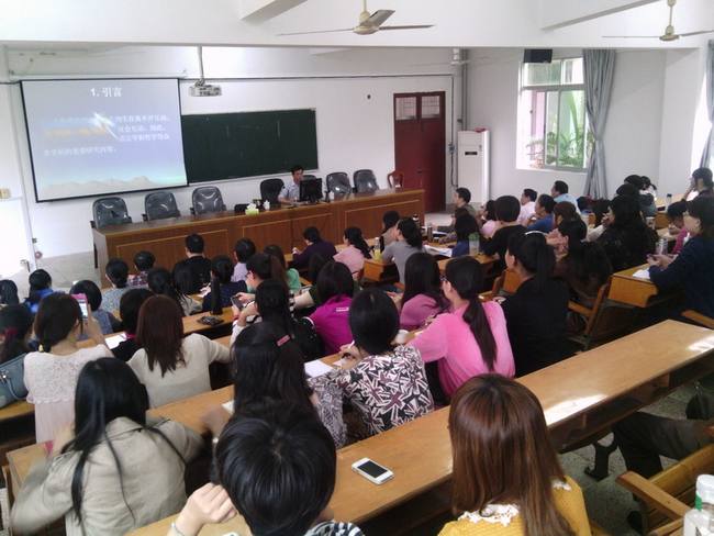 另外,廖教授结合自己申报国家社科基金课题和作为相关评审专家的经历,给外语系教师做了题为《如何申报社科基金项目》的精彩演讲。廖教授详细讲解了课题的研究类型、选题的确立、规范、研究的主要内容、研究的思路、方法和重点等内容,并结合自己申报成功的国家社科基金项目“中国法庭话语语用研究”现身说法,具体说明申请表格的填写及注意事项等。