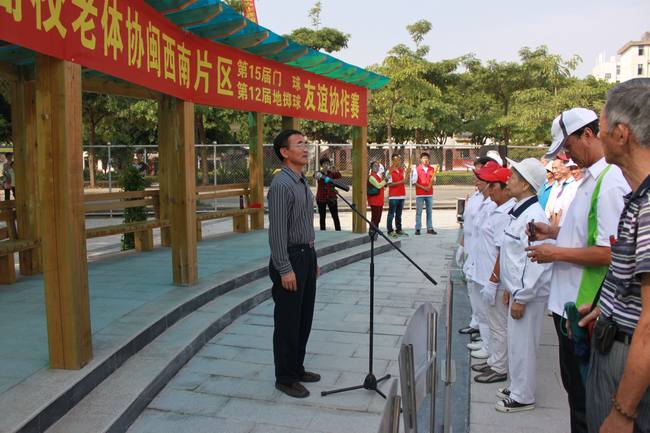 11月6日至7日,2012年“福建省高校老体协闽西南片区第15届门球友谊协作赛、第12届地掷球友谊协作赛”在登录入口新落成的门球、地掷球场隆重举行。来自省内厦门、泉州、龙岩和漳州地区的厦门大学、华侨大学等八所兄弟院校的一百多名老年运动员、裁判员欢聚一堂。6日下午2点开幕式隆重召开,校离退休干部管理处处长徐继红同志致欢迎辞,校党委林春生副书记代表学校宣布比赛开幕,并一同视察了新场地设施建设和观摩比赛。此次新落成的门球、地掷球场,是在登录入口党委的高度重视下,在学校相关部门的共同努力下完成的。场地环境优美、配套舒适,是目前省内高校老年门球、地掷球体育活动场所中场地最集中、设计最标准的活动和比赛用地,得到各兄弟高校的高度赞誉。