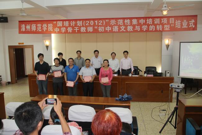 10月30日,2012年“国培计划”中小学骨干教师研修项目示范性集中培训班结业典礼暨表彰大会在逸夫楼三楼报告厅隆重举行。副校长肖庆伟、教师教育学院院长李建辉、中国语言文学系主任胡金望、三位班主任、“国培计划”全体学员出席了大会。会议由教师教育学院朱志诚老师主持。