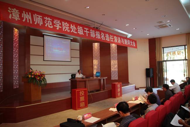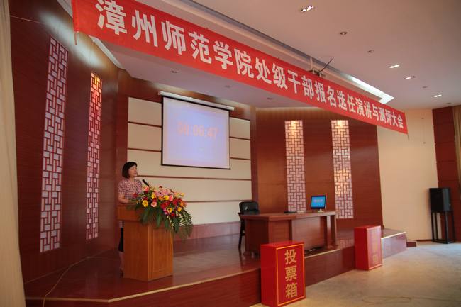 在竞职演讲开始之前,林春生副书记作了重要讲话,他指出公开报名选任干部是校党委进一步加强干部队伍建设,提高选人用人公信力,形成风清气正良好工作氛围的一个重要举措,要充分肯定参加报名选任人员的参与意识和敢于登台,勇于竞争,善于自荐的行动,这些同志都是怀着对漳州师范学院事业的一往情深、对学校发展充满期待、对美好未来给予希望,都是想通过报名选任,走上新的岗位,来发挥自己的聪明才智,实现自身的人生价值,为学校的发展发展多做贡献。他要求与会的同志以高度的政治责任感,全面准确地把握党委的要求,讲公德、秉公心、主公正,严肃对待干部民主测评工作,要从大局出发、从事业出发,不为感情所左右,不为亲疏所影响,以对组织负责、对同志负责的态度,做出全面、客观、公正的评价。