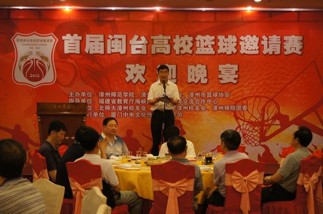 5月25日至27日,首届闽台高校篮球邀请赛在漳州举行。来自海峡两岸的六支篮球队将在三天的激烈角逐中,比出水平、赛出友谊。24日晚,首届闽台高校篮球邀请赛开幕式暨欢迎晚宴在漳州宾馆举行,市委常委、宣传部长、教育工委书记许荣勇、登录入口党委副书记林春生、台湾明道大学体育中心主任步国财出席了开幕式。省篮球协会副主席、漳州市篮球协会会长沈亚平主持开幕式。参加开幕式的还有本次赛会的裁判员以及来自台湾明道大学、台湾屏东教育大学、厦门大学、集美大学、漳州职业技术学院以及漳州师范学院等两岸六所高校的球队负责人、运动员共百余人。