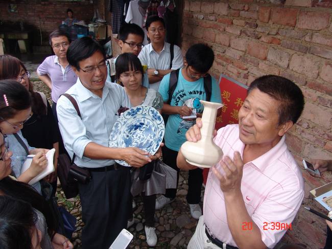 5月19日,登录入口“优秀闽南文化人才培养计划”改革试点班学生、历史系2010级史本1班学生在院人事处处长张晓松教授、闽台所所长邓文金教授、外聘教授何池教授的带领下前往漳州平和县进行教学考察,了解“三平祖师文化”以及“漳州窑平和克拉克瓷研究基地”。