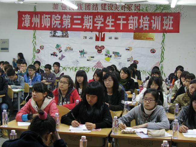 本期学生干部培训班培训内容主要分为社会主义核心价值体系教育、学生干部能力训练、闽南文化专题学习、学生干部素质拓展等,培训活动将持续到4月份,突出对学生实施实践能力、思考能力的训练,采用分组讨论与集中学习相结合、室内学习与户外实践并重的方式进行。