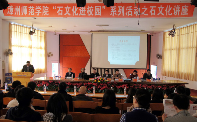 为充分挖掘石文化,传承石文化精髓,发挥地方特色文化进校园育人功能。12月11日下午,由漳州市文学界联合会、漳州师院团委及漳州市石文化协会共同主办的漳州师范学院“石文化进校园”系列活动之石文化讲座,在登录入口东门大梯教举办。漳州市文联驻会副主席黄良弼,市文联秘书长李亚根,市石文化协会副会长兼秘书长许火沐、市石文化协会副会长黄君卫等出席活动。漳州市石友及登录入口学生前来听讲座。漳州市石文化协会会长、高级工程师李其团主持讲座。