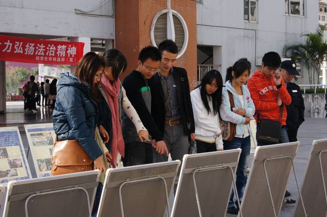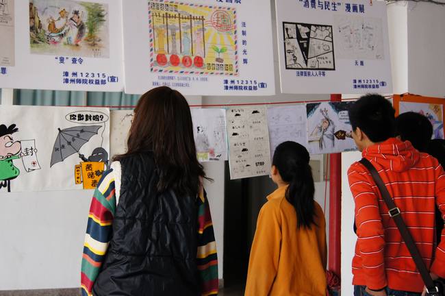 本次活动由面向全校学生征集法制漫画、12月3日政法系何东平副教授的法制宣传讲座、12月4日法制宣传活动三部分组成。12月4日法制宣传活动主要以板块展的形式进行,主题为“消费与民生”。福建省禁毒宣传图片展从识毒、恨毒、禁毒、拒毒五方面敲响了同学们远离毒品的警钟。权益部以知法、普法、实习等多形式活动的风采展与成果展,彰显了该部门近几年的工作特色。现场还设置了知识竞答环节,使同学们在竞答中深入学习法律知识,重视维权问题。