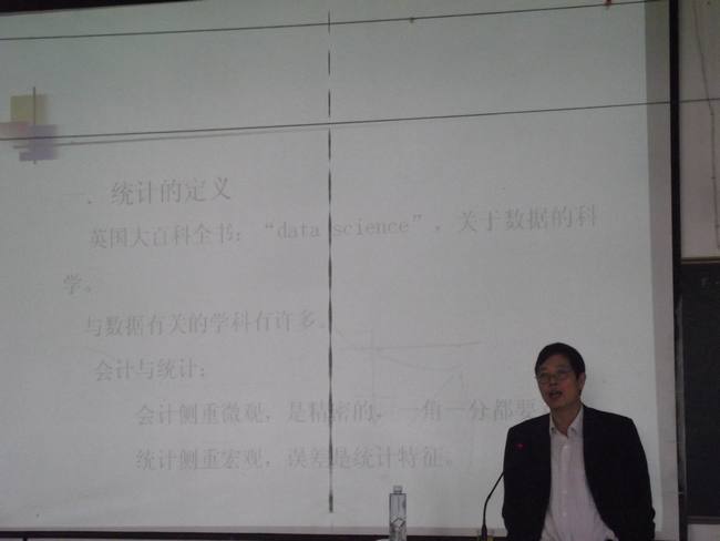 11月25日上午,应数学系邀请,中国人民大学博士生导师金勇进教授在砺志楼120教室给数学系本科生做了题为“统计思维与哲学”的报告,在砺志楼114室举行了由数学系、经济系部分教师和数学系部分研究生参加的座谈会。