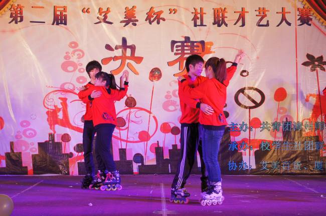 11支代表队同场竞技,各施所长。生命如火,欣欣向荣,由办公室带来的集体舞《歌舞青春》揭开了“青春校园”的美丽篇章 。“你是我的眼带我领略四季的变换,你是我的眼带我穿越拥挤的人群……”吴林深情的吉他弹唱《你是我的眼》赢得阵阵掌声;红衣配黑裤,律动的音乐、轻快的舞姿,滑轮表演者像一个个飞舞的精灵,向大家演绎着奇妙的滑轮世界,博得满堂喝彩。走进“多彩社联”,挥洒热情,谱写青春。戴鑫鑫等人带来的乐队演唱将年轻人特有的执着与《倔强》表现得淋漓尽致;小品《春运》讲述了城里人歧视农民工的故事,寓意深远,令观众深思;光阴如梭,音符诉说了过往的岁月,客家山歌协会代表曹杵英演唱《老两口爱唱歌》,其清亮的嗓音,优美的舞姿给观众留下深刻印象;最后,比赛在李亚萍友情演唱的《难忘今宵》中圆满落幕。