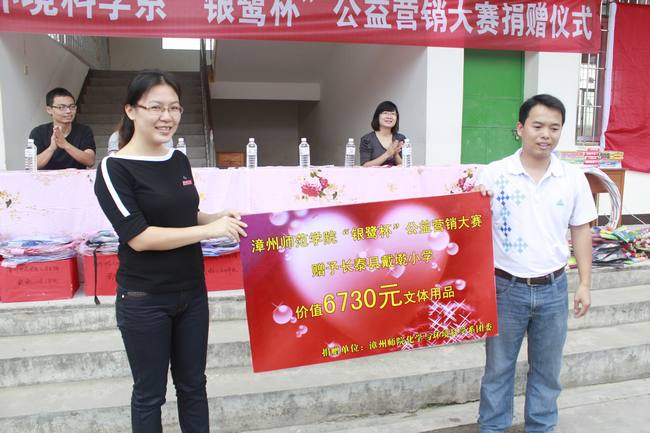 活动采用团队形式,以营销实践和自主创业实践方式进行比赛,并把比赛公益基金用于爱心公益活动。经过前期的筹划安排,11月4日上午,该系团委负责人前往漳州市长泰县戴乾小学,将本次比赛所有的盈利(总额6730元)作为公益基金为小学生们购买了文体用品与书籍,并为学校仅有的6个班级各自建立了励志图书角,旨在帮助学校改善教学条件,满足孩子们的学习需求,树立远大志向。