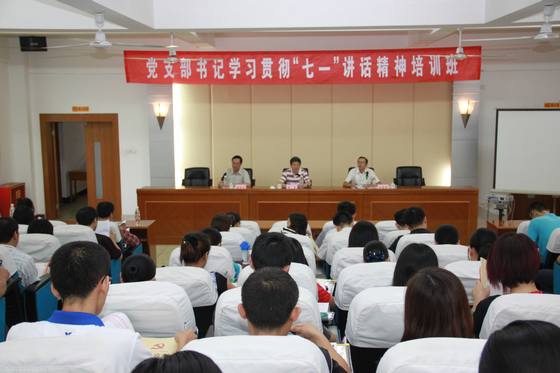 9月22日下午3:00,党支部书记学习贯彻“七一”讲话精神培训班在逸夫楼三楼报告厅举行了开学式。校纪委书记李克、组织部部长吴晓峰出席开学式。开学式由党校常务副校长陈朱文主持。
