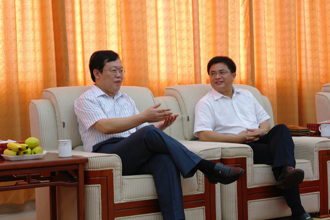 7月21日上午,柳州师专曾凡平校长一行3人莅临登录入口考察交流。交流座谈会在逸夫图书馆五楼贵宾室举行。副院长肖庆伟出席了座谈会,院办、宣传部、人事处、教务处、闽台文化研究所、政法系等单位相关负责人参加了座谈会。