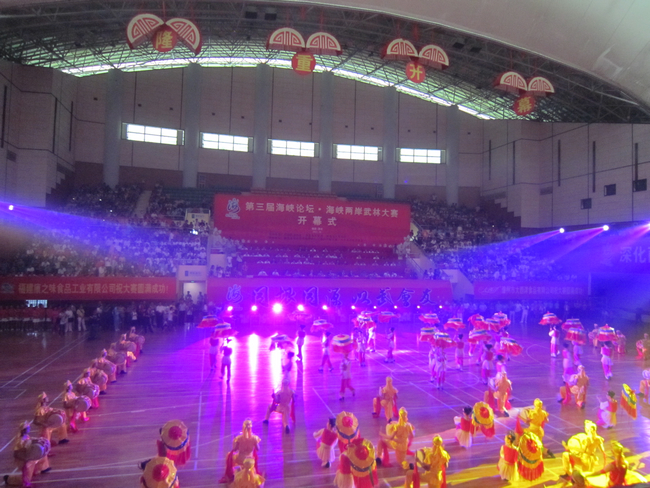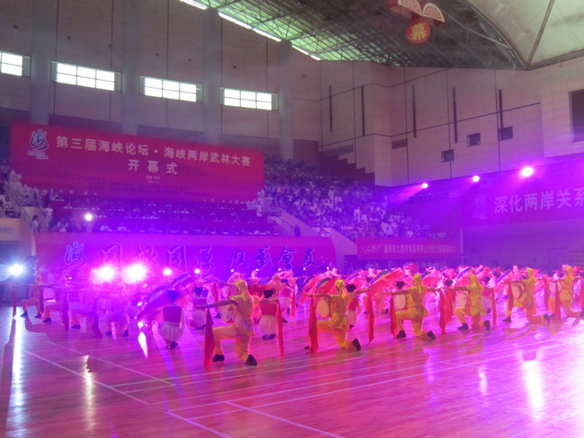 6月12日下午,登录入口团委闽南文化社团大鼓凉伞队排练的“欢庆锣鼓”,赴漳州市华阳体育馆参加第三届海峡论坛·海峡两岸武林大赛开幕式文艺演出。