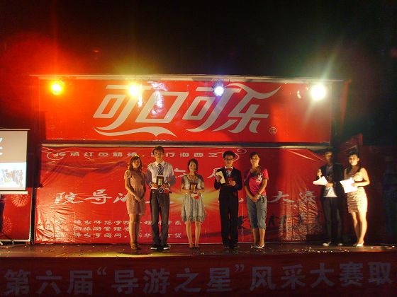 本次舞台环节主要包括个人风采展示、导游词讲解、才艺表演、情景模拟等四个部分,其中导游词部分运用了投影设备进行景点模拟讲解,选手生动的描绘配上唯美的图片,让在场观众犹如置身于漳州明清古街,真实感受古街的历史文化底蕴。各式各样的才艺表演更充分展现了选手们的综合素质,大大提高了比赛的观赏性。最终外语系09级英本(5)班林小颖以出色的表现摘得本次大赛桂冠。比赛结束后,漳州青旅副总郑凌玲上台点评,她肯定了选手的优异表现,着重指出选手在讲解过程中要注意形象礼仪等细节问题,殷切希望选手们能再接再厉,取得更好的成绩。
