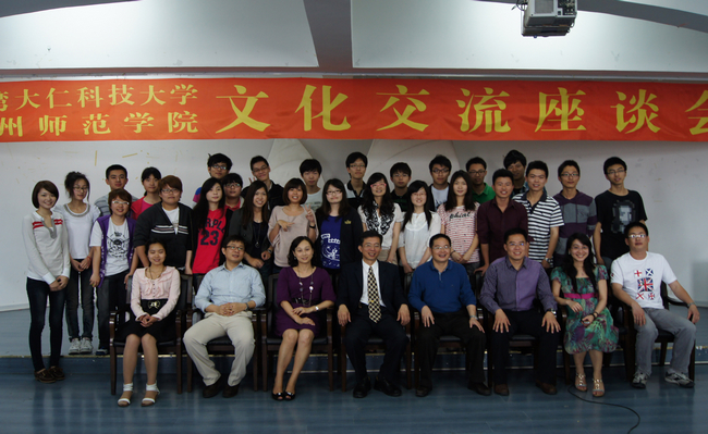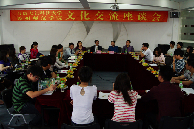 4月28日上午,台湾大仁科技大学代表团与登录入口相关部门领导及师生代表在达理学生活动管理中心三楼多功能厅举办了两校文化交流座谈会。台湾大仁科技大学郭岱璜主任秘书、护理系苏贞瑛主任、合作中心冯启宏主任,登录入口教务处副处长黄晓农、院团委宣传部副部长郑炎山、海外教育学院办公室副主任李雪芬等出席了本次活动。