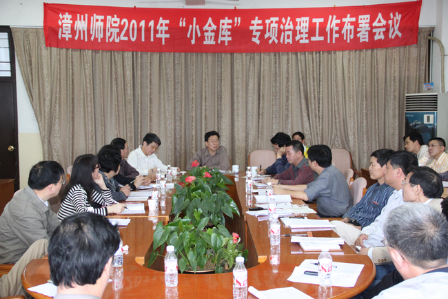 5月3日上午,漳州师范学院2011年“小金库”专项治理工作部署会议在综合楼六楼会议室召开,院长李进金出席了本次会议。各系主任及机关各部门主要负责人参加了会议。会议由院纪委书记李克主持。
