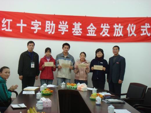 1月18日,该基金“红十字助学基金发放仪式”在院学生处会议室举行,出席发放仪式的有漳州师院党委林春生副书记、漳州市红十字会李德胜常务副会长、洪余璇副秘书长,院学生处、院红十字会领导、4名受助学生及其带班辅导员。学生处林静华处长主持了发放仪式。