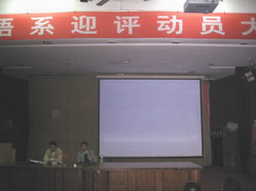 为了使学生们进一步了解我院08年教学水平评估的相关要求及情况,更好地投入迎接评估的准备工作,12月7日晚,我系在大梯教举行了全系迎评动员大会,大会由系主任胡郑辉副教授主讲,系党总支书记罗瑛及系辅导员参加了本次大会。