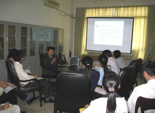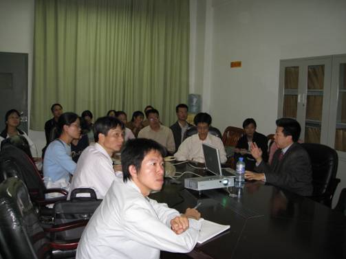 余军教授1981年毕业于南京气象学院数学系,1983年赴美,在美国获博士学位;现任美国佛蒙特大学工程与数学学院副院长,数学与统计系副主任,分管科研工作,在将微分方程应用于海洋、航天卫星、地理等领域的研究上取得了突出成就。在本次报告会上余教授详细介绍了他的最新研究成果,并对目前微分方程的最新应用进行了精辟的阐述。在场的老师和同学都被余教授的博学及生动精彩的报告所吸引,并就报告的内容进行了广泛的讨论交流。