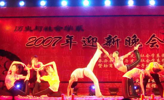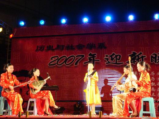 11月24日晚上7点,历史与社学系2007年迎新晚会在达理公寓学生活动中心隆重上演,现场气氛热烈,掌声雷动。院长王复兴、院团委书记朱百里、历史系主任邓文金、党总支副书记白永坤与系部分教师到场观看了晚会。