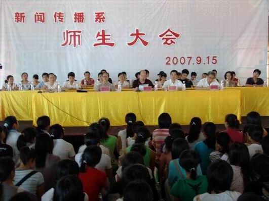 洪照耀在会上向全体师生介绍了新闻传播系的教师情况。目前,新闻传播系拥有新闻学、传播学、编辑出版学等五个教研室,现有教职工33人,其中正副教授8名,在校生573人,设有广播电视新闻、编辑出版、广告学三个本科专业。