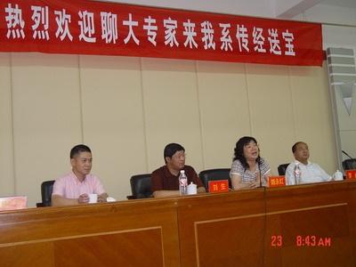 2007年7月23日上午,应我院党委书记陈永红的邀请,聊城大学副校长李喆、聊城大学外语学院院长刘生以及广西桂林电子科技大学外语系教授梁正宇莅临我院外语系,传授“迎评促建”的宝贵经验。院党委书记陈永红出席了会议,外语系全体教职员工参加了会议。
