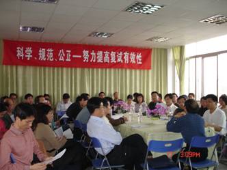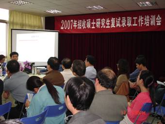 2007年研究生招生复试工作已进入准备阶段,将有近60名考生参加此次复试。为进一步推进研究生复试工作的科学性、公平性,正确贯彻实施教育部《关于研究生招生复试工作的指导性意见》文件精神,我院研究生处于4月11日召开研究生招生委员会工作会议,会议传达学习了2007年全国研究生招生工作的有关精神,讨论决定我院2007年硕士研究生招生指标的分配方案及复试录取办法。4月17日下午,研究生处举行了“2007年招收硕士研究生复试录取工作培训会”,此次培训会由研究生处处长黄金明主持。黄处长就近几年来全国研究生招生制度改革情况和我院研究生招生工作现状进行了全面分析和介绍;招生科科长蔡如兴就2007年研究生复试工作应当注意的几个问题进行了讲解;培训人员还对南开大学、浙江大学等院校的复试情况进行了影像观摩。此次培训主要是针对各招生系的研究生工作主管领导、各系复试工作小组成员、专业复试小组成员和参与复试的工作人员。