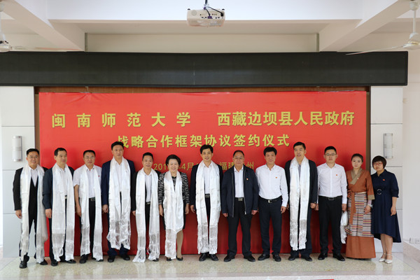 夏冰在致辞中表示,本次战略合作协议的签订既是西藏自治区与福建省双方深入贯彻落实党的十九大精神,推动校地双方跨省域产学研协同合作和福建省对口支援西藏自治区昌都市援藏工作的一项重要举措,也是边坝县践行新发展理念、加快推动高质量发展进程中的一件大事,相信县校双方的合作必将更好地助力地方高校与跨省域地方政府的协同发展,进一步推动福建省对口援藏工作的成效,更好地促进边坝县基础教育事业新发展。