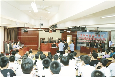 此次比赛采取模拟法庭形式,按照我国现行法庭审理的正规模式进行。漳州一中、二中、三中、八中、正兴学校、立人学校等6所学校各组织一支队伍参赛。最后由杨宇珑、黄昕等10位同学组成的漳州一中代表队在比赛中表现优异,斩获冠军。