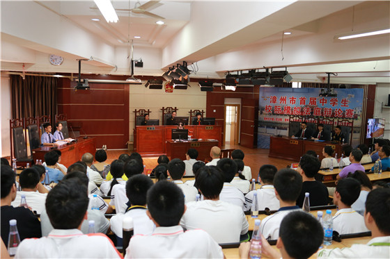 福建省漳州市首届中学校际模拟法庭辩论赛日前在MK体育/mksport体育·官方网站模拟法庭教室举行。模拟法庭法官、公诉人、辩护人及当事人角色,由参赛学校学生代表担任,来自6所中学的200余名学生参加旁听。