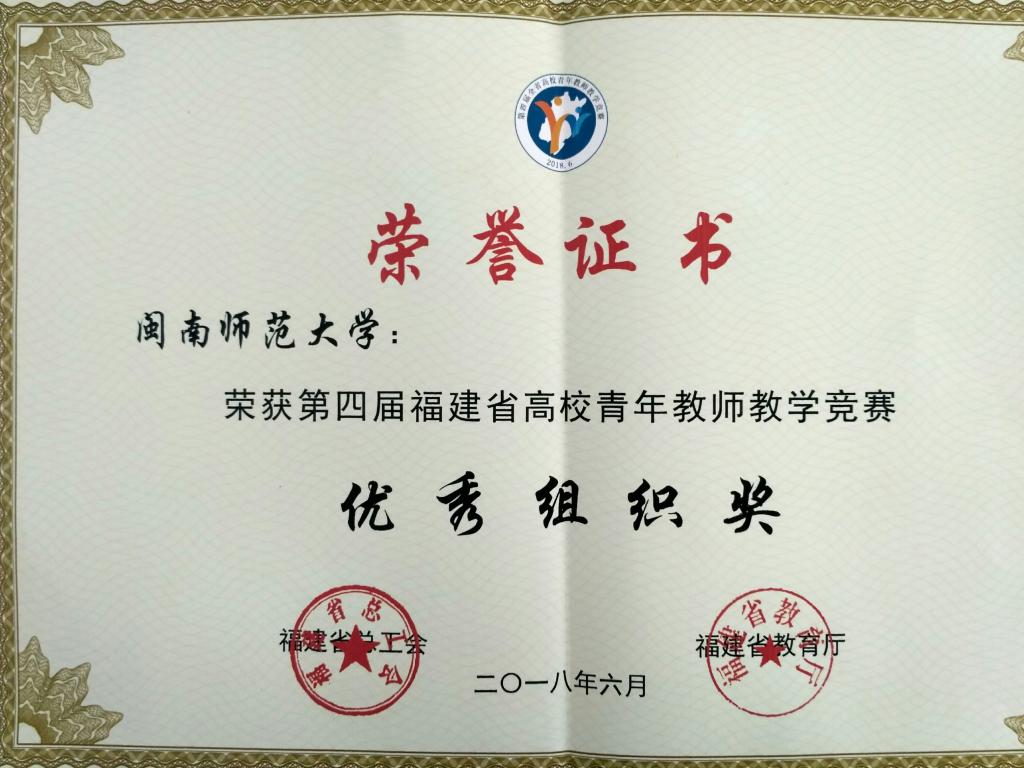 此外,新闻传播学院罗志超老师、数学与统计学院沈钦锐老师、化学化工与环境学院黄杰老师分别获得人文社会科学、自然科学基础学科、自然科学应用学科三等奖,并被授予“福建省高校青年教坛新秀”荣誉称号,充分展示了闽南师大教师扎实的教学基本功和良好的精神风貌。闽南师大被授予“优秀组织奖”。