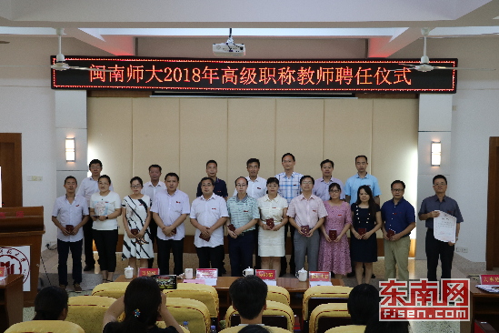 闽南师大党委书记吴彬镪、校长李顺兴为2018年新聘任高级职称教师颁发聘书。化学化工与环境学院黄明强教授代表新聘任高级职称教师发言,表示将以此次聘任为新起点,时刻铭记“博学、明理、砺志、笃行”的校训,爱岗敬业、为人师表,严格要求自己、真诚关爱学生,勇于创新、拓宽视野、更新知识,不断提高教学水平和科研能力,自觉肩负起教书育人的光荣使命,为“新闽师”建设作出新的贡献。