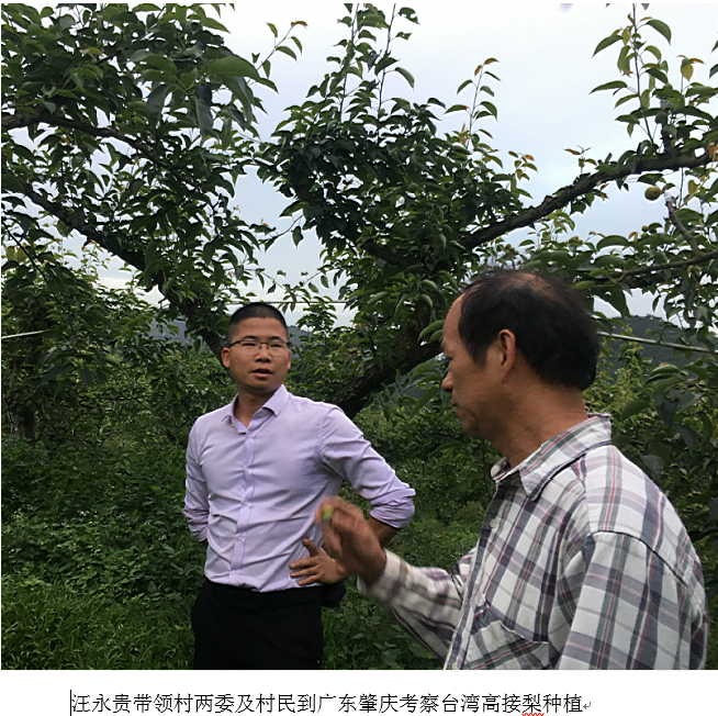 汪永贵到村后就开始密集的走访调研。走访中,村民提到最多的是蜜柚问题,“汪书记,我们村空气、水质都很好,就是种植的蜜柚收成不好,2015年的霜冻冻死了村里很多的蜜柚,我们村很多人都亏本。”村民所说的蜜柚,是平和县的支柱产业。但对于高海拔、低气温的山区,蜜柚并不适宜种植。汪永贵听在耳里,记在心里,通过气象数据收集和水质土壤检测,多方邀请专家和企业家到村里调研考察,并经常带领村两委和村民多方实地考察,不到半年,村里就建立了适宜的台湾高接梨和蜂蜜李新品种示范基地。针对村民思想意识保守的情况,汪永贵鼓励村民大胆尝试,先后引进来了组培金线莲、小米椒和水果牛奶玉米等新品种。很多人劝他不要做产业扶贫这块,原因是产业扶贫成功率太低,但是汪永贵相信科学,相信通过精准的检测,摸清市场需求,就一定能在一定层面上得到改善。他说“只要做足调研,觉得合适,那就要大胆尝试,做了不一定成功,但没做就一定不会成功。”
