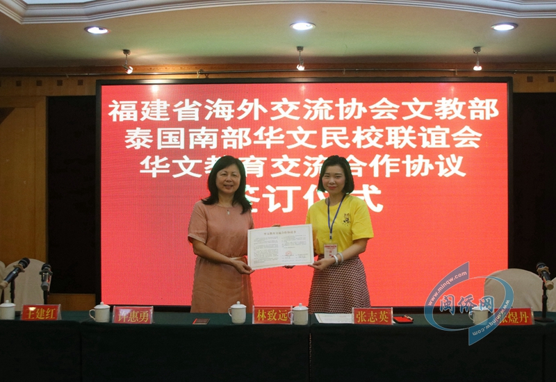 开营式上,福建省海外交流协会与泰南华文民校联谊会签订了华文教育交流合作协议。