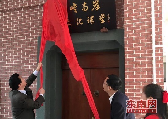 闽南师大校长李顺兴与漳州市海峡两岸茶业交流协会会长刘文标为课堂揭牌
