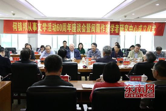 成立仪式后,举行了何镇邦从事文学活动六十周年座谈会暨新书首发式。何镇邦两本新书《追问生活》《昔日风景看不尽》获得了专家学者的高度评价,在闽南师大校园内掀起了阅读热潮。