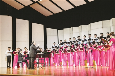 音乐会在唯美悠扬的《大地之歌》中拉开了帷幕。由闽南师大艺术学院“闽之南”合唱团带来的《大卫的故事》《海豹摇篮曲》《金色之光》《月亮叙事曲》《爱在哪里》等14首中外经典曲目,或深情委婉或欢乐跳跃,极富感染力。特别是饱含浓郁闽南风情的《花树下》《看一只鸟仔》《城南送别》《我身骑白马》等歌曲,更是创新融入了歌仔戏(芗剧)中的七字调及客家童谣,并借助无伴奏混声合唱、男女生小组对唱等多种形式进行精彩演绎,赢得现场观众阵阵掌声。最后,音乐会在全场高唱《歌唱祖国》中圆满落幕。