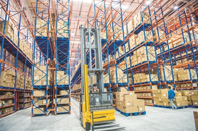 为了加快货品的调拨能力和效率,长泰鸿星尔克电子商务产业园近年来一直积极打造智慧物流体系。 记者 游斐渊 摄