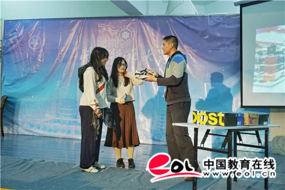 “看!我这一身可是香奈儿最新款!”“阿迪达斯不要9998,也不要998,只要198,先到先得!”在“维权情景剧”中,同学们通过一幕幕令人啼笑皆非的场景将生活中的“假冒名牌”侵权实例以轻松诙谐的方式展示给观众,精彩的表演引得现场爆笑不断。而接下来的“权益小游戏”——击鼓传“法”,更是将现场气氛推向了高潮,同学们在刺激又有趣的游戏中学习到更多维权知识。值得一提的是,在“维权之法律小课堂”环节中,众多国内外经典影视剧的配音被改编成侵权实例,如“出租车拒载拼车、超市售标价不一、销售假货”等。这些熟悉的侵权场景一一出现,凭借其精彩有趣的展示方式进一步加深了同学们的维权意识。此外,在活动过程中,同学们积极与工商局代表互动,在日常生活中遇到的有关维权的疑问都得到了权威的解答。